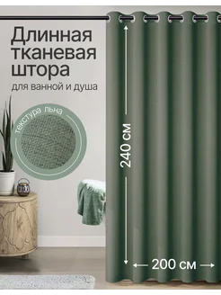 Длинная штора для ванной тканевая 240х200 см зеленая