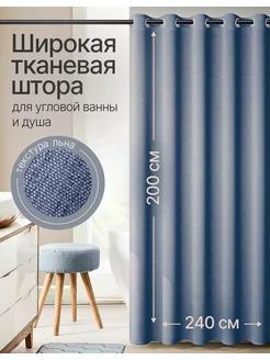Широкая штора для угловой ванны тканевая 200х240 см синяя