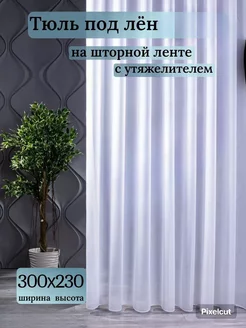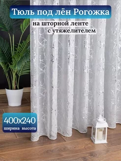 Тюль под лен 400х240 в гостиную готовая с утяжелителем Штора