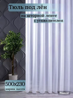 Тюль под лен 500х260 в гостиную готовая с утяжелителем Штора