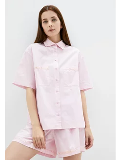 Пижама с шортами и рубашкой со стразами хлопковая комплект