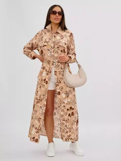 Платье-рубашка бежевое длинное свободное вискоза