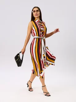 Платье рубашка миди без рукавов в полоску