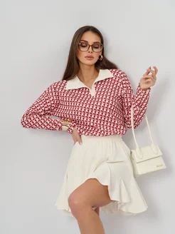 Лонгслив поло кофта оверсайз с принтом
