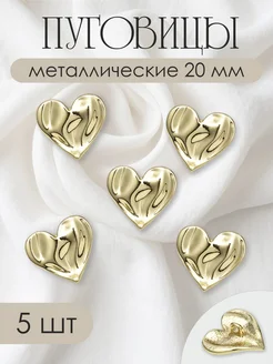 Набор декоративных металлических пуговиц Сердце 5 шт