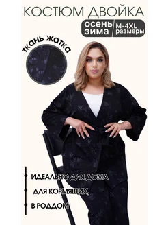 Костюм больших размеров брючный в пижамном стиле кимоно
