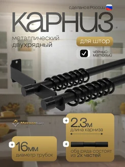 Карниз для штор настенный двухрядный 2.3м с 48 кольцами