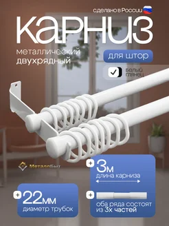 Карниз для штор двухрядный настенный 3 м, 90 колец