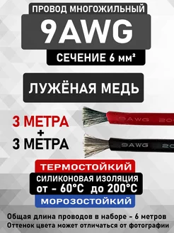 Силиконовый медный провод 9AWG (3 м красный + 3 м черный)