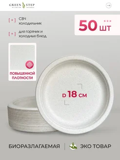 Тарелки одноразовые бумажные без принта прочные 18 см 50 шт