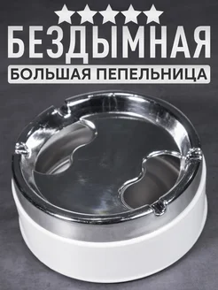 Пепельница большая бездымная для дома белая