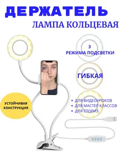 Гибкий держатель для телефона с лампой селфи настольный