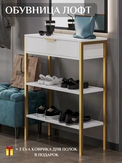 Обувница консоль( тумба) с ящиком Лофт, дуб, белая