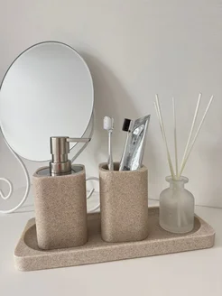 Набор аксессуаров для ванной комнаты, 3 предмета, бежевый