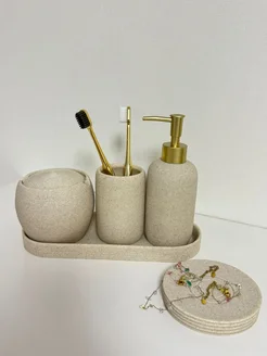 Набор аксессуаров для ванной комнаты, 6 предметов, бежевый