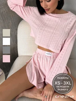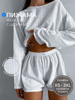 Пижама домашняя с шортами с длинным рукавом ажурная