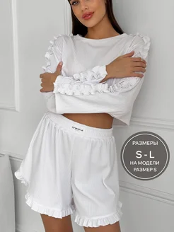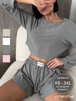 Пижама домашняя с шортами с длинным рукавом