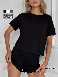 Пижама с шортами и футболкой из вискозы домашняя одежда