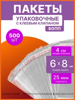 Пакеты БОПП упаковочные с клеевым клапаном 6х8 500шт