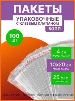 Пакеты БОПП упаковочные с клеевым клапаном 10х20 100шт