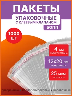 Пакеты БОПП упаковочные с клеевым клапаном 12х20 1000шт