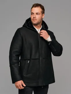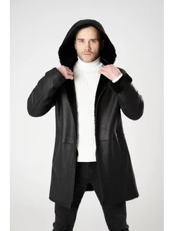 Дубленка с капюшоном зимняя пальто из натуральной кожи