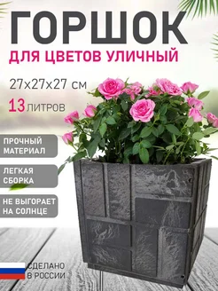 Кашпо напольное уличное, гладкое, вазон, 33 л, графит