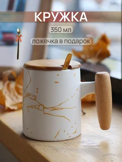 Кружка керамическая с деревянной крышкой и ручкой 350 мл