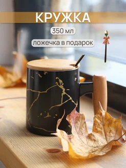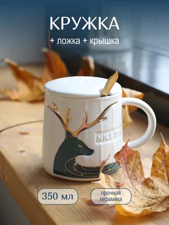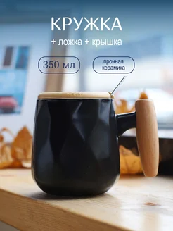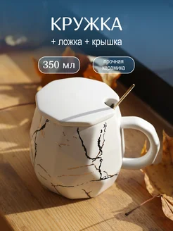 Кружка керамическая с крышкой и ложкой 350 мл