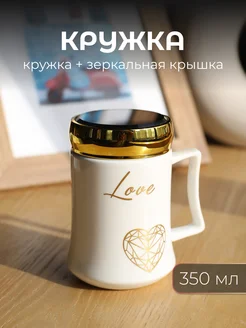Кружка керамическая крышка с зеркалом 350 мл