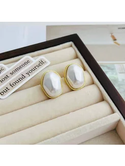 Серьги бижутерия женские крупные золото с жемчугом old money