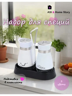 Сахарница и солонка с крышкой и ложкой набор с подставкой