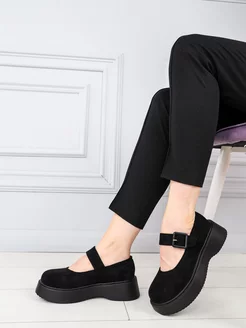 Школьные туфли классические замшевые Мери Джейн с ремешком