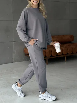Костюм спортивный двойка брючный оверсайз футер без начеса