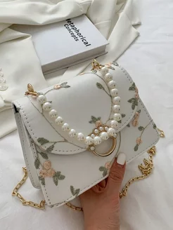 Cумка маленькая клатч белая с жемчугом