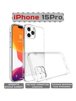Чехол на iPhone 15 Pro прозрачный с защитой камеры