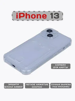 Чехол на iPhone 13 прозрачный с карманом для карты