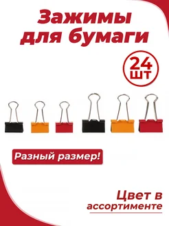 Набор зажимов для бумаги металлические канцелярские, 24 шт