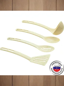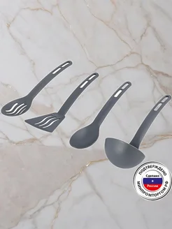 Набор лопаток для кухни 4 шт. с металлической ручкой 35см