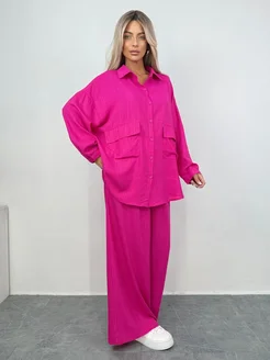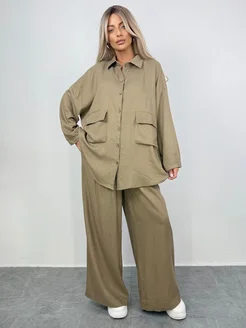 Костюм льняной оверсайз брючный больших размеров