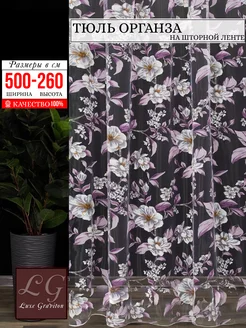 Тюль органза с рисунком цветочки для гостиной 500 на 260