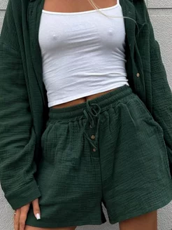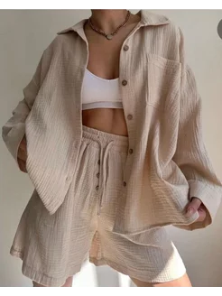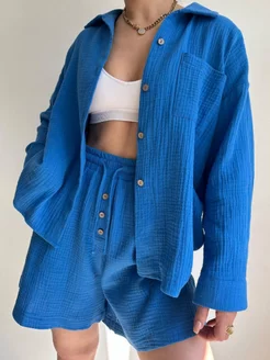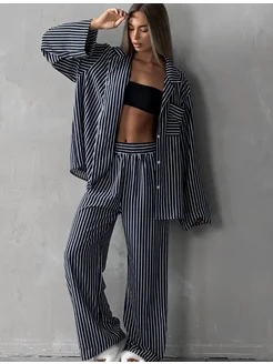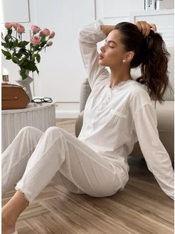 Пижама шелковая со штанами и рубашкой домашний комплект