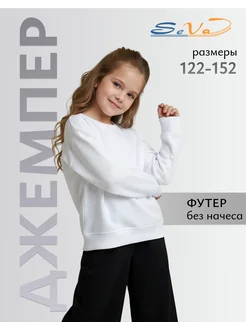 Джемпер для девочки школьный, белый, свитшот, оверсайз