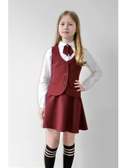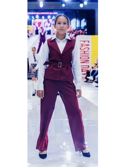 Костюм Брюки-палаццо бордовый, жилет бордовый для девочки