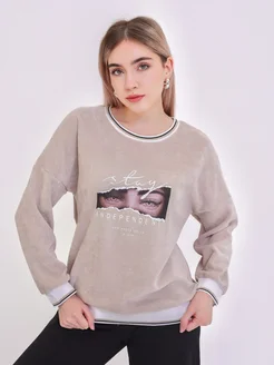 Свитшот оверсайз велюровый с принтом