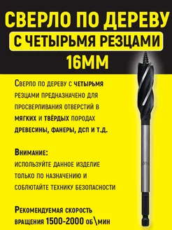 Сверло по дереву с четырьмя резцами 16мм