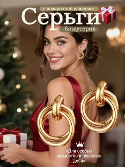 Серьги крупные под золото стильные новогодние OLD MONEY