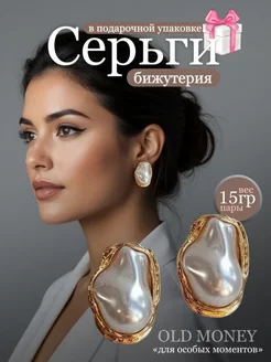 Серьги бижутерия крупные с жемчугом исcкуственным OLD MONEY
