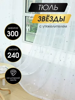 Тюль под лен со звездами в гостиную спальню 300*240 длинный