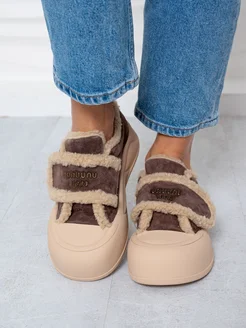 Кроссовки женские зима. Кеды с мехом коричневые. Маломерят!